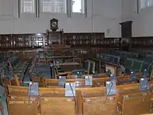 The building was commissioned to replace an earlier Sessions House at Newington Causeway in Newington which had been completed in 1791.[2][3] Following the implementation of the Local Government Act 1888, which established councils in every county, it became necessary to find a meeting place for Surrey County Council.[4] However as Newington formed part of the County of London from 1889 and therefore lay outside the area administered by the council, county leaders chose to procure a new purpose-built county headquarters.[3] By 1890 six towns were being considered: Epsom, Guildford, Kingston, Redhill, Surbiton and Wimbledon.[5] The site selected had previously formed part of the Woodbines Estate in Kingston.[3][6]