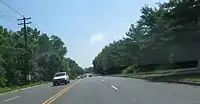 CR 544 continues into Evesham Township in Burlington County and reaches an intersection with Route 73. Past this intersection, the route becomes the two-lane divided Marlton Parkway and passes The Promenade at Sagemore shopping mall, as well as residential subdivisions, curving to the southeast. At the CR 619 intersection, CR 544 becomes two-lane undivided Taunton Lake Road and enters forested areas with some homes. The route crosses into Medford Township and comes to its eastern terminus at CR 623.[1][2]