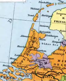 The County of Holland was a State of the Holy Roman Empire and from 1432 part of the Burgundian Netherlands, from 1482 part of the Habsburg Netherlands and from 1581 onward the leading province of the Dutch Republic, of which it remained a part until the Batavian Revolution in 1795. The territory of the County of Holland corresponds roughly with the current provinces of North Holland and South Holland in the Netherlands.
