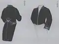 An earlier proposal, dated to May 9 of the same year, also included changes to the uniforms of low-ranking employees like Imperial Guard patrolmen, but the released ordinance delegated responsibility for the uniforms of Imperial Household Agency employees at or below sōninkan level to the Imperial Household Agency itself.[27] The Imperial Household Agency released ordinances defining the uniforms for these employees the next day, on May 27. After this the uniforms that sōninkan-level and below officials wore in their duties, including those corresponding to court uniforms, were simply referred to as work uniforms (職服, shokufuku).