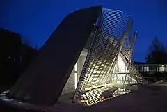 The Courthouse of Arezzo is a judiciary building in Arezzo, Italy, designed by the Italian architect Manfredi Nicoletti. It consists of two bodies: the first one is the building of the former Sanatorium “Antonio Garbasso” restored, and houses most of the court offices. The second building was constructed in 2004-2008, and houses the garage, the archives, a large multi-level hall, two large double story courtrooms, a number of offices and the press room, in addition to bathrooms and accessories. It has the shape of a solid with a complex geometry.