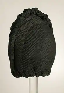 Woman's mourning bonnet in hard crape, c.1880