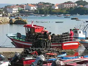 Maja squinado (European spider crabs) are a species of migratory crabs found in the north-east Atlantic and the Mediterranean Sea. They are the subject of commercial fishery, with about 5,000 tonnes caught annually, 70% off the coast of France, 10% off the coast of the United Kingdom, 6% from the Channel Islands, 3% from each of Spain and Ireland, 2% from Croatia, 1% from Portugal, and the remainder from Serbia and Montenegro, Denmark and Morocco,[1] although official production figures are open to doubt.[19] The European Union imposes a minimum landing size of 120 mm for M. squinado,[20] and some individual countries have other regulations, such as a ban on landing egg-bearing females in Spain and a closed season in France and the Channel Islands.[19] | |||||