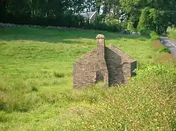 A ruined Curling house still stands below the old manse at the site of an old lochan in 1832[2] that was used as a curling pond with a brick dam added. It was a brick built rectangular building with a single fireplace and a corrugated iron roof.[28] The dam and building were created in 1853. In 1902 the Tarbolton Curling Club played the Craigie Curling Club at Craigie and won by 74 to 64.[29] Writing in 1926 a local recalled that when ice formed on the lochan the farmers, minister, teacher and neighbours all came to curl and the day's labour was forgotten.[8]