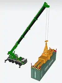A sidelifter crane is a road-going truck or semi-trailer, able to hoist and transport ISO standard containers. Container lift is done with parallel crane-like hoists, which can lift a container from the ground or from a railway vehicle.