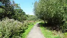 The reserve is part of a park which has a variety of names. An old notice on the site calls it River Crane Park, while a newer one shows it as part of Crane Valley Park, which stretches along the River Crane from Great Chertsey Road to the Grand Union Canal.[5] It is also shown as part of the six mile long linear Crane Valley Park by London Gardens Online,[6] while London's environmental information centre, Greenspace Information for Greater London, calls it Dudset Farm Pastures.[4][7] The London Loop long distance walk goes through the reserve, and the directions show it as Crane Bank Park.[8]