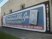 ![]() Broad Street storefronts in downtown Crawfordville, Georgia, with Taliaferro County Courthouse in the distance | |