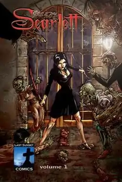 The story revolves a "creepy girl" named Scarlett, who lives in a graveyard just beyond a small town. Scarlett lives there alone with her only companion Mr. Ted, who she talks to frequently.[8] In the first issue it is revealed that the townspeople have wronged her, along with a shady organization called "The Order of the Red Sun".[9] Scarlett battles a variety of nemeses and later reveals she will have revenge, on everyone involved in her mysterious tragedy.[10] However the seemingly immortal girl becomes nothing more than a fairytale to those without any direct history with her.[1]