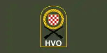 The Croatian Defence Council (Croatian: Hrvatsko vijeće obrane, HVO) was formed on 8 April 1992 and was the official military of Herzeg-Bosnia, although the organization and arming of Bosnian Croat military forces began in late 1991. Each district of Herzeg-Bosnia was responsible for its own defence until the formation of four Operative Zones with headquarters in Mostar, Tomislavgrad, Vitez and Orašje. However, there were always problems in coordinating the Operative Zones. On 15 May 1992 the HVO Department of Defense was established. By that time the HVO Main Staff, Main Logistics Base, Military Police, and Personnel Administration were also formed.[79] The backbone of the HVO were its brigades formed in late 1992 and early 1993. Their organization and military equipment was relatively good, but could only conduct limited and local offensive action. The brigades usually had three or four subordinate infantry battalions with light artillery, mortars, antitank and support platoons. A brigade numbered between few hundred to several thousand men, but most had 2–3,000.[80][81] In early 1993 the HVO Home Guard was formed in order to provide support for the brigades.[82] The HVO forces became better organized as time passed by, but they started creating guards brigades, mobile units of professional soldiers, only in early 1994.[83] The European Community Monitoring Mission (ECMM) estimated the strength of the HVO in the beginning of 1993 at 45,000–55,000.[84] In July 1993, CIA estimated the HVO forces at 40,000 to 50,000 men.[85]
