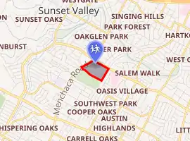 Crockett High School is located at the corner of Manchaca Road and Stassney Lane. Crockett's first principal, Forrest Kline, teachers and students enjoyed lunch in the courtyard amongst massive boulders and oak trees because the cafeteria had not been completed. Actor Fess Parker, best known for his 1950s portrayals of Davy Crockett for Walt Disney,[1] attended the school's first pep rally.[2]