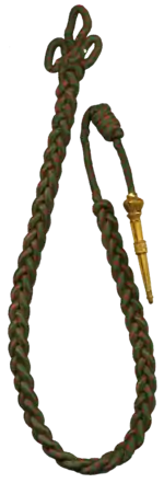 Soldiers who were/are members of units recognized by a collective unit award of the Croix de guerre may wear the Fourragère of the Croix de guerre 1914-1918 as long as they remain members of that unit. Soldiers who actively took part as members of units during repeated feats of arms recognized by more than one collective award of the Croix de guerre may continue to wear the fourragère even after leaving the meritorious unit.[1] Battle streamers in the colours of the Croix de guerre 1914-1918 are affixed to the colours of recipient units.