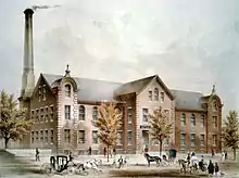 The Crompton Loom Works is an historic industrial complex of the Crompton Corporation at 132-142 Green Street in Worcester, Massachusetts. The factory manufactured looms for textile factories. With its original portion dating to 1860, the complex is one of the oldest surviving industrial sites in the city. The facility was established by George Crompton, whose father William had invented the first power loom for weaving fancy fabrics. The younger Crompton's business would become of the most significant employers in the city, and his innovative looms would revolutionize the textile industry. Crompton and his successors would operate the loom manufacturing works at Green Street well into the 1960s. The manufacturing capabilities on the site were applied to producing can packaging machines and bowling pinsetters. Capabilities at the Green Street facility included machining, drop hammer forging, a cast iron foundry (which also produced ductile and malleable iron castings), wood working . and pattern making, along with a materials testing lab.. The building has subsequently been adapted to other uses.[2] The complex was listed on the National Register of Historic Places in 1980,[1] and included as part of the Blackstone Canal Historic District in 1995.[2]