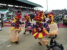 Cross River (native name: Oyono)[1] is the main river in southeastern Nigeria and gives its name to Cross River State. It originates in Cameroon, where it takes the name of the Manyu River.[2] Although not long by African standards its catchment has high rainfall and it becomes very wide. Over its last 80 kilometres (50 mi) to the sea its flows through swampy rainforest with numerous creeks and forms an inland delta near its confluence with the Calabar River,[3] about 20 kilometres (12 mi) wide and 50 kilometres (31 mi) long between the cities of Oron on the west bank and Calabar, on the east bank, more than 30 kilometres (19 mi) from the open sea. The delta empties into a broad estuary[4] which it shares with a few smaller rivers. At its mouth in the Atlantic Ocean, the estuary is 24 kilometres (15 mi) wide. The eastern side of the estuary is in the neighbouring country of Cameroon.