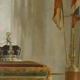 It was placed on top of the Queen Mother's coffin for her lying-in-state and funeral in 2002.[5]