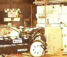 Crumple zones, crush zones,[1] or crash zones, are a structural safety feature used in vehicles, mainly in automobiles, to increase the time over which a change in velocity (and consequently, momentum) occurs from the impact during a collision by controlled deformation; in recent years also incorporated into trains and railcars.[2][3][4][5]
