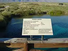 Poza Azul is a protected wetland, located 9 km (5.6 mi) from Cuatrociénegas seat. It is one of the best known wetlands in Cuatrociénegas. There are a photographic exhibition hall of the flora and fauna of the reserve, viewing platforms, and self-guided trails.