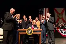 On June 16, 2017, President Donald Trump stated that he was "canceling" the Obama administration's deals with Cuba, while also expressing that a new deal could be negotiated between the Cuban and United States governments.[12][13] On November 8, 2017, it was announced that some travel restrictions which were loosened by the Obama administration would resume, and that fresh restrictions would be imposed on "direct financial transactions" with certain businesses belonging to the Cuban armed forces and interior ministries[14] and would go into effect on November 9.[15] Further changes were made in 2019, but many of the changes made in 2015 remain in effect.