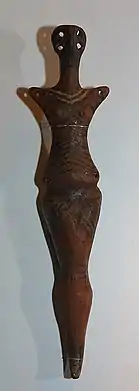 ...the stiff nude to be representative of death on the basis that the color white is associated with the bone (that which shows after death). Stiff nudes can be found in Hamangia, Karanovo, and Cucuteni cultures[44]