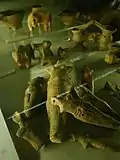 Both remains and artistic depictions of horses have been discovered at Cucuteni–Trypillia sites. However, whether these finds are of domesticated or wild horses is debated. Before they were domesticated, humans hunted wild horses for meat. On the other hand, one hypothesis of horse domestication places it in the steppe region adjacent to the Cucuteni–Trypillia culture at roughly the same time (4000–3500 BC), so it is possible the culture was familiar with the domestic horse. At this time horses could have been kept both for meat or as a work animal.[33] The direct evidence remains inconclusive.[34]