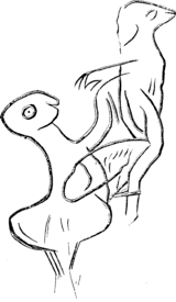 There are many representations of animals, anthropomorphs (human-like figures), and ideomorphs (including penises, vulvas, tools, and more abstract images).