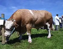 Pembrokeshire also produces beef[10] from breeds such as Welsh Black cattle, a native cattle breed. This breed has developed, in part, from the extinct breed known as Pembroke cattle. Gilli Davies notes that, in Pembrokeshire, the Welsh Black cattle grow to a large size and are good milk producers, due to the county's rich pasture. This led to Welsh Black cattle in Pembrokeshire being recognised as a distinct race and the Welsh Black of Castlemartin, Pembrokeshire now have their own herd book. By the nineteenth century the breed had developed into two distinct strains: the smaller the North Wales variety and the bigger Castlemartin, or South Wales, type.[11] However, R. M. Lockley noted that, by the twentieth century, the long horns and dual purpose nature of the Welsh Black made it less popular. Farm specialisation meant that the breed was substituted for specialised beef or milk breeds. Hereford (cattle) became popular for beef production while Friesian cattle were used for milk production.[12] However, the Welsh Black has since made a comeback and is regaining in popularity, with Welsh Black meat now sold across the county at retail outlets and farm shops.[11]