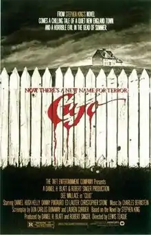 Cujo is a 1983 American horror film based on Stephen King's 1981 novel of the same name and directed by Lewis Teague. It was written by Don Carlos Dunaway and Barbara Turner (using the pen name Lauren Currier),[2][3] and starring Dee Wallace, Daniel Hugh Kelly and Danny Pintauro.