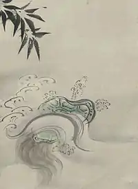 The tortoise is a favored motif by netsuke-carvers and other artisans, and is featured in traditional Japanese wedding ceremonies.[2] There is also a well-known artistic pattern based on the nearly hexagonal shape of a tortoise's shell. These patterns are usually composed of symmetrical hexagons, sometimes with smaller hexagons within them.[36]