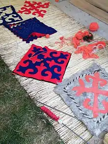 Kyrgyz women produce a wide range of textiles, mostly from felt made from the wool of local sheep. Ancient patterns are nowadays adapted to the tourist and export market, but it is still a living tradition, in that all yurts and most houses contain hand-made carpets or felt rugs called shyrdaks.