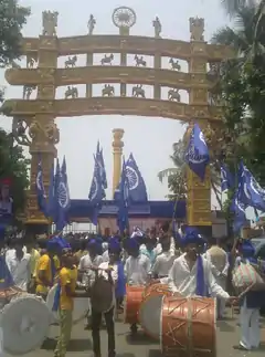 About 79% of Maharashtrians are Hindu, and there are significant Muslim, Christian and Buddhist minorities.[4] The Maharashtrian culture consists of people from all a vast majority of religions. Due to it being huge areawise, many sub-regional cultures also exist in Maharashtra. The sub region of Vidarbha, was earlier a part of Madhya Pradesh, hence it has that influence upon its culture.[5] There are many temples in Maharashtra, some of which are thousands of years old. These temples are constructed in a fusion of architectural styles borrowed from North and South India. The temples also blend themes from Hindu, Buddhist and Jain cultures. The temple of Vitthal at Pandharpur is the most important temple for the Varkari sect. Other important religious places are the Ashtavinayaka temples of Lord Ganesha, Bhimashankar which is one of the Jyotirling (12 important Shiva temples).[6][7]