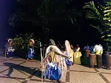 Music and dance are an integral part of Rwandan ceremonies, festivals, social gatherings, and storytelling.[5] The most famous traditional dance is Intore, a highly choreographed routine consisting of three components - the ballet, performed by women; the dance of heroes, performed by men, and the drums.[6] Traditionally, music is transmitted orally with styles varying between the social groups. Drums are of great importance, the royal drummers having enjoyed high status within the court of the mwami. Drummers usually play together in groups of seven or nine.[5]
