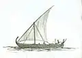 Hafali doni. A six-oared fishing boat with a detachable mast and a square sail. Fua Mulaku, 1982.