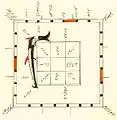 Top of a malaafaiy (wooden cover for food items) with Arabic writing. Lacquered wood made in Thulhaadhoo Island, 1985.