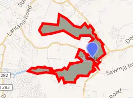 Part of the Cumberland Homesteads Project called for the construction of a recreational area near the center of the homesteads. Two New Deal agencies, the Works Progress Administration and the Civilian Conservation Corps, arrived in the area in 1934 to build the recreational area's facilities.[2] Company 3464 of the CCC, under the direction of the National Park Service, began the construction of Byrd Creek Dam in 1935 and completed it in 1938, effectively creating the 50-acre (0.20 km2) Byrd Lake. The dam, like many of the Homestead structures, is constructed of a native sandstone commonly called Crab Orchard Stone. At a height of 28 feet (8.5 m) and length of 319 feet (97 m), the dam is the largest masonry project ever completed by the CCC. CCC Company 3464, assisted by Company 1471, continued to work at the park until 1941, building trails, picnic areas, cabins, a boathouse, a bathhouse, and other structures.[3][4]