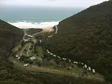 The Cumberland River rises south of Mount Cowley and south-east of the Benwerrin-Mount Sabine Road in the Otway Ranges in southwest Victoria and flows generally east before turning south just above popular short walk destination Jebbs Pool, between the high cliffs of Langdale Pike and Castle Rock, then along the cliff side of Cumberland River Holiday Park between The Brothers and Mount Defiance where the river reaches its mouth, crossing near the edge of a 200 metres (660 ft) sandy surf beach, and empties into Bass Strait, northeast of Wye River, Victoria and to the south of Lorne.[5] From its highest point, the river descends 532 metres (1,745 ft) over its 20-kilometre (12 mi) course.[6]
