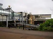 The intended core of Cumbernauld remains the Town Centre buildings, all of which is essentially contained within one structure, segmented into "phases", the first of which was completed in 1967, the latest of which began construction in May 2003 for completion around September 2004. Initially the basic groundwork for the new shops began in 1997 and were finally completed in summer 2007. Designed to be a commerce centre, an entertainment and business venue and a luxury accommodation site, it was widely accepted as Britain's first shopping centre and was the world's first multi-level covered town centre.[102] However, the town never developed to its planned size, and the town centre has never had the life envisaged by town planners. Wealthy occupiers for the penthouses situated within the "Alien's Head" (locals' acerbic moniker for the top section of the building[114][115]) never materialised. Further expansion has been primarily to provide further space for shops. A substantial portion of the original Shopping Centre was demolished due to structural damage and has been redeveloped as a new shopping and leisure complex.[116]