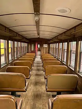 For passenger services, the C&TSRR operates a mixture of flat roofed and clerestory cars with interiors corresponding with the railroad's three classes of service: Coach, Deluxe (formerly Tourist class) and Parlor.[19] In 2019, the car shop in Antonito, Colorado finished the first in a line of new clerestory cars that will serve as standard passenger cars and new Parlor cars. This is part of an effort to retire the older flat roofed cars due to their age.[16] The C&TSRR also operates observation gondolas as well as special coaches configured to accommodate wheelchairs and house concession areas.[20]