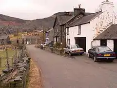 ![]() Houses in Cwm Penmachno, showing the quarry behind | |
