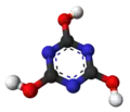 Cyanuric acid or 1,3,5-triazine-2,4,6-triol is a chemical compound with the formula (CNOH)3. Like many industrially useful chemicals, this triazine has many synonyms. This white, odorless solid finds use as a precursor or a component of bleaches, disinfectants, and herbicides. In 1997, worldwide production was 160 million kilograms.[2]