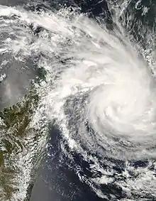 By February 14, it had sped up and entered a more favourable environment, becoming a severe tropical storm.[13] On February 15, Ivan was re-upgraded to a tropical cyclone as favourable conditions persisted. Ivan was further upgraded to an Intense Tropical Cyclone on February 16 as it moved closer to Madagascar. Ivan made landfall north of Fanoarivo, Madagascar on February 17.[14] Once overland, rapid weakening occurred due to the rugged terrain of the island.[15] Ivan was forecast to regenerate over the Mozambique Channel into a tropical depression once it left Madagascar.[16] Ivan traversed Madagascar, heading southwest. Its remnants emerged back over water on February 21, and Météo-France resumed advisories on "filling depression Ex-Ivan".[17] Ivan, severely disrupted by Madagascar, did not strengthen any further; the last advisory was issued on February 22.[18]