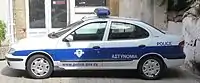 Cyprus Police cars are white with a blue stripe that goes around the car. On both sides they have printed on them the words POLICE and ΑΣΤΥΝΟΜΙΑ, which means Police in Greek. They also have the logo of the Cyprus Police, usually on the front doors and also have printed on them the Police’s website www.police.gov.cy. An exception to this is some of the cars used by the Neighbourhood Police that have the Neighbourhood Police logo instead of the Cyprus Police Logo. On the front part of the car they have again the logo with the words POLICE and ΑΣΤΥΝΟΜΙΑ and at the back they could have, depending on the model of the car and the space available, the words Police in Greek and English or just the Cyprus Police insignia or both. On the roof they have printed a distinct number for each one as aerial roof markings.
