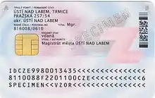 The Czech national identity card (Czech: Občanský průkaz, citizen card, literally civic certificate; Czech pronunciation: [ˈoptʃanskiː ˈpruːkas]) is the identity document used in the Czech Republic (and formerly in Czechoslovakia), in addition to the Czech passport. It is issued to all citizens, and every person above 15 years of age permanently living in the Czech Republic is required by law to hold a valid identity card.[1]