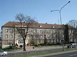 During the war[38] at least 11 students were killed by the Germans.[39] When most of Poznań was seized by the Red Army yet with the German troops still holding out in the Citadel, some teachers approached the nascent Polish administration about re-opening of the school;[40] few days later the Młyńska premises were almost entirely destroyed during the final phase of the battle. An attempt to seize a non-school building still standing on the former Luisenschule plot proved unsuccessful.[41] Following a brief period when the school operated jointly with the Potocka College[42] and once a formal decision to re-open the school had been adopted,[43] recruitment took place in the former Chamber of Commerce building.[44] In 1945-1948 Dąbrówka was hosted in premises of Państwowe Liceum Pedagogiczne,[45] Zamoyska College[46] and the former Colegium Marianum.[47] The school commenced the schooling year of 1948/49 at Plac Bernardyński, in the premises taken over from another college, shut down as hotbed of reactionary education.[48] At that time the heavily damaged building at Młyńska Street was refurbished and turned into a dormitory for non-resident girls of Poznań colleges.[49]