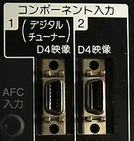 The D-Terminal or D-tanshi (D端子) is a type of analog video connector found on Japanese consumer electronics, typically HDTV, DVD, Blu-ray, D-VHS and HD DVD devices. It was developed by the EIAJ (Electronic Industry Association of Japan) in its standard, RC-5237, for use in digital satellite broadcast tuners. In appearance it is a small flat trapezic connector, the same connector as the AAUI connector used by Apple Computer for some time to connect to ethernet.