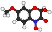 DIMBOA (2,4-dihydroxy-7-methoxy-1,4-benzoxazin-3-one) is a naturally occurring hydroxamic acid, a benzoxazinoid. DIMBOA is a powerful antibiotic present in maize, wheat, and related grasses,[1]