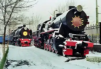 Following the invasion of Poland in September 1939 Nazi Germany disbanded the Polish State Railways (PKP). Polish rail officials were either executed in mass shootings or imprisoned, and some 8,000 managerial positions were staffed with German officials.[6] Former Polish companies began producing German engines BR44, BR50 and BR86 as early as 1940, some using forced labor. By 1944, the factories in Poznań and Chrzanów were producing the redesigned Kriegslok BR52 locomotives for the Eastern Front. These locomotives were made almost entirely of steel; the use of more expensive, non-ferrous metals was dropped in view of the engines' expected lifespan.[6] After the war, some 1,200 class 52s remained in reconstituted Poland. Another 200 were acquired from the Soviet Union in 1962-64. The class 52, designated Ty2, began to be phased out in the 1980s; its last regular use was in 1999.
