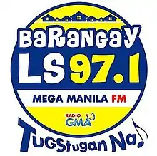 DWLS (97.1 FM), broadcasting as Barangay LS 97.1, is a commercial radio station owned and operated by GMA Network subsidiary RGMA (Radio GMA), serving as the flagship FM station of Barangay FM.[1] The station's studio is located at the GMA Network Center Complex, EDSA corner Timog Avenue, Diliman, Quezon City, with transmitter located at GMA Tower of Power Barangay Culiat, Tandang Sora, Quezon City, Philippines. DWLS-FM operates 24 hours a day, 7 days a week (with exception of the Paschal Triduum, during the annual Holy Week on terrestrial FM radio only).
