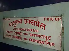 The 11021 / 11022 Dadar Terminus - Tirunelveli Chalukya Express is an express train of the Indian Railways connecting Tirunelveli Junction in Tamilnadu and Dadar Terminus of Mumbai, Maharashtra. It is currently being operated as 11021/11022 train numbers on tri-weekly basis.[1][2]