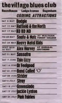 Dagenham Roundhouse is a pub and music venue located in Dagenham, London, England.[5] It was established in 1969 as the "Village Blues Club", and from then until 1975 it was considered east London's premier rock music venue.[1]
