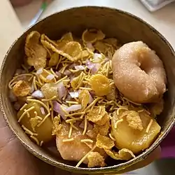 | Main ingredients | Vada, dahi (yogurt), Potato Curry and Pea Curry |