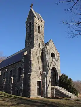 The chapel was built for Sarah Madeleine Vinton Dahlgren, daughter of Congressman Samuel Finley Vinton, who had married Admiral John A. Dahlgren, inventor of the Dahlgren gun, in 1865. Admiral Dahlgren died in 1870.[1] Mrs. Dahlgren purchased a former tavern on South Mountain at Turner's Gap as a summer retreat, naming it Dahlgren Manor. The chapel was built across the National Road from the house. When Mrs. Dahlgren died in 1898, she was interred in the chapel's family crypt.